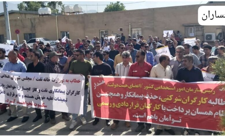 کارگران پیمانکاری نفت و گاز گچساران در تجمعی مقابل ساختمان مرکزی شرکت، بار دیگر اعتراض خود را نسبت به تبعیض در حقوق، فقدان امنیت شغلی و محرومیت از خدمات رفاهی اعلام کردند و از مسئولان خواستند به وعدههایشان عمل کنند.